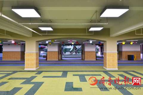 针对厦门湿润多雨的气候,为了给孩子们提供下雨天的活动场地,特别设计了一层架空的风雨操场,遮风挡雨、视线通透,孩子们可以在这里放心呼吸,自由玩耍。