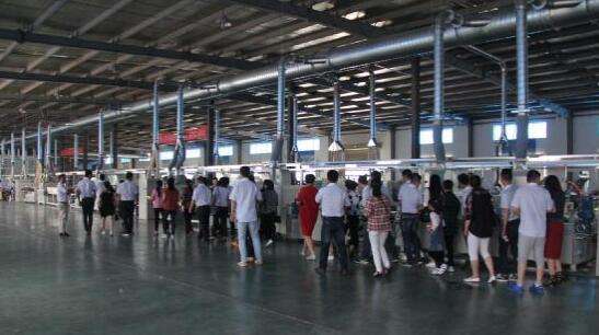 到达扬子地板来安工厂后,妈妈们被来安工厂的规模震撼到了。有妈妈对儿子说“没想到你们企业的工厂这么大!”儿子自豪地回答“那当然,我们来安工厂有6万平米厂房,生产的地板卖到全国30个省呢。”步入实木地板生产车间,妈妈们参观了超长全自动淋漆生产线,这一条生产线长度就有上百米,儿子陪着妈妈们足足走了5分钟。