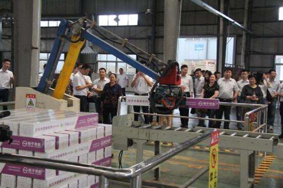 在地板成型车间,妈妈们看到了开槽、包装、搬运的各种大型机械设备,她们对扬子地板工厂的自动化程度表示惊叹,围着自动、灵活工作的机械臂纷纷拍照。有些妈妈的儿子早年在工厂实习、工作过,他们兴致高昂地向妈妈说起工厂这些年机械化水平的提升和对员工劳作的解放。