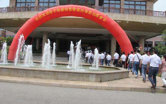 公司业务团队在酒店入口处列队欢迎妈妈们的到来