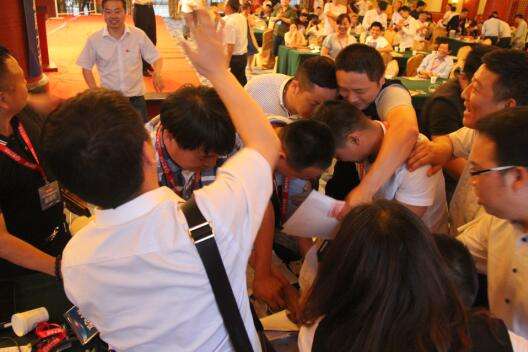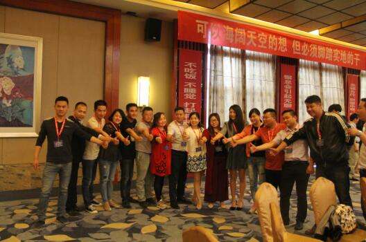 两天的会议以团队竞争的形式开展,100多名经销商分成十支战团,各自选出了团长、政委,摆出了自己的加油队形,并在团长带领下踊跃缴纳了PK基金。