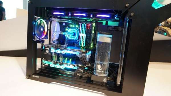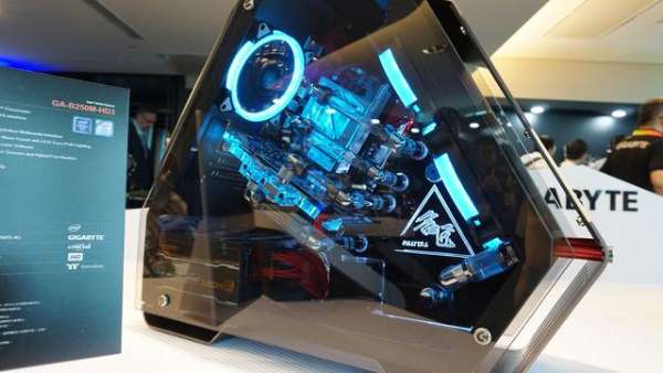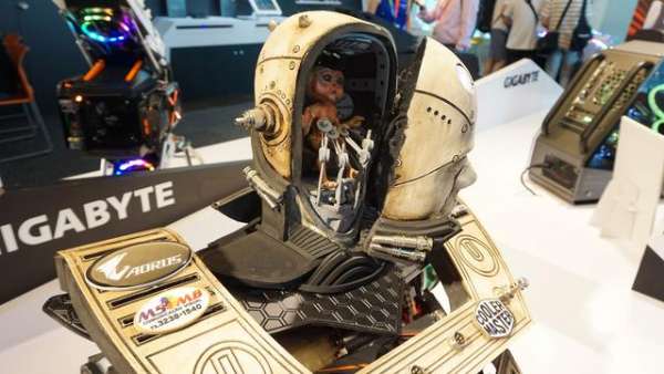 这次技嘉展台上,也有多台基于AORUS Z270X- Gaming 9设计的MOD主机作品,很有艺术感。
