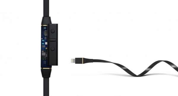 购买 iSine 10 黑/钢版本的用户还将获得一根 Audeze 公司的 Cipher Lightning 线缆,其内部集成了 DAC、放大器、麦克风和音频控制等组件,还可以和 Audeze 的 iOS 应用交互,以实现进一步的音频调优。
