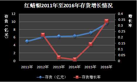 红蜻蜓2011年至2016年存货增长情况