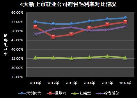 4大新上市鞋业企业销售毛利率对比
