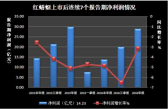 红蜻蜓上市后连续7个报告期净利润变动情况
