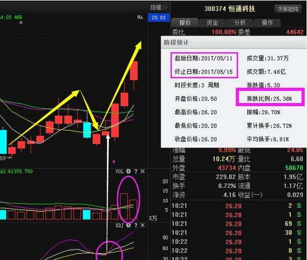一姐11号给大家讲解的恒通科技,当时这只票已经站稳智能辅助线,当天涨停并且出现一阳穿四线的现象,量能较前期也有放大,KDJ发出金叉,MACD也是已经翻红,于是一姐果断的提示了大家这只牛股,获利也有25.38%的涨幅了,在这里恭喜一下把握住的朋友。