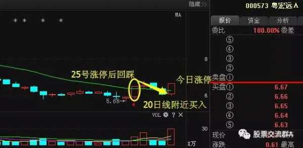 25涨停26号冲高后回落,下跌2天,形成特定形态:涨停回踩。第一根线:主力追踪线判断主力筹码在场。第二根线:20日线(图中绿线)股价跌至此线确定买入时机,昨日尾盘或今开盘买入,涨停前卖出。