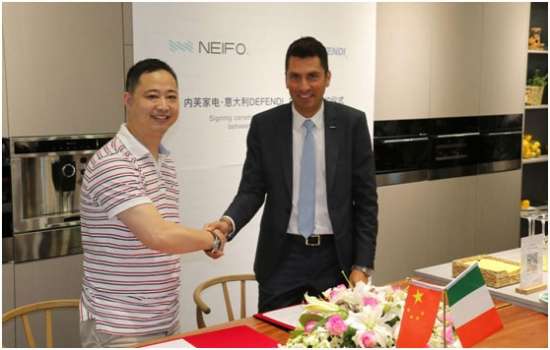 内芙家电与意大利DEFENDI集团于展会现场签署技术合作协议