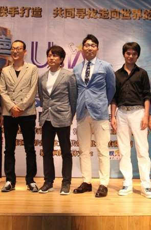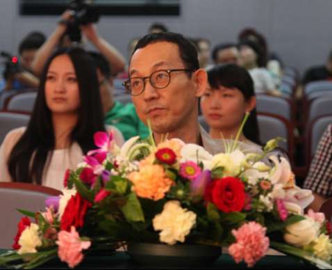 中国明星舒嘉颖(前)、韩国著名导演表民洙(后)