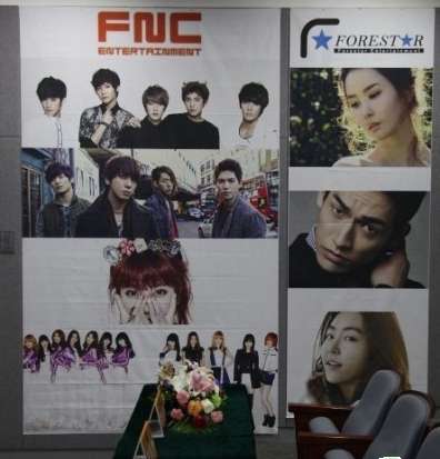 选秀现场悬挂着FNC旗下明星的海报