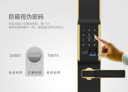 如果使用卡片开锁方式,顶固智能锁可全面支持公交卡、小区卡等流行卡片作为开门钥匙,让消费者根据自身的带卡习惯来开锁。同时,该款智能锁还有防窥视伪密码的功能,在开门输入密码的时候,可前后输入任意伪密码,每一次看到的密码都不一样,防止窥视者盗取密码,进入房间。