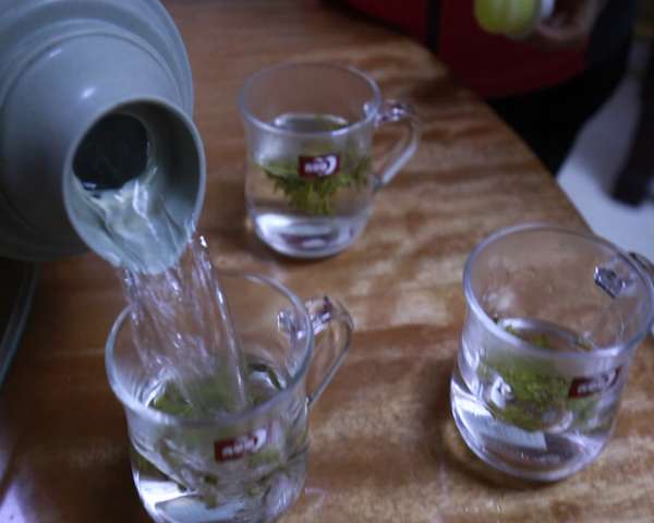 终于盼到了一杯今年的西湖龙井,当地人家在沏茶的时候,都是先倒小半杯水,说是要润一润,然后再倒满。