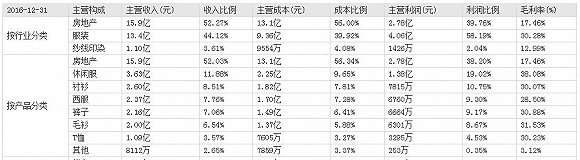 2016年红豆股份男装业务营业收入13.42,同比增长16.12%,占总营业收入的44.13%;房地产业务营业收入15.90亿元,同比增长12.48%,占总营业收入的52.29%,房地产业务收入占了红豆股份业务收入的半壁江山。