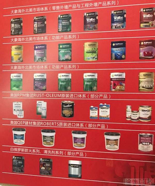 大象红枫叶列举的主要举措包括:全面恢复大象品牌产品的生产供应、并大量供给品质全面提升的海外产品(主要在北美市场);供应与美国RPM、芬兰等合作的原装进口水性木器漆、木油、木蜡油、浴缸及瓷砖修复涂料等产品;引进QEP建材集团属下ROBERTS品牌,产品涵盖防水系列、密封胶系列、瓷砖天风粘贴系列等……