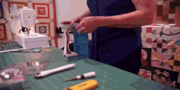 当然,QIKPIK不仅仅是可以裁布,下方的码边针才是神器,完全可以取代缝纫机,更轻松、更傻瓜化地缝补。