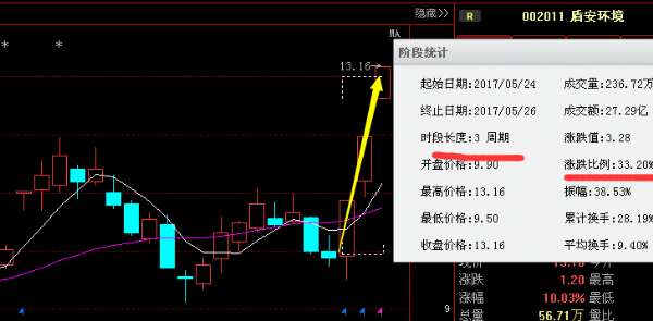5月24号早盘通过《涨停复制选股法》提示粉丝朋友介入的盾安环境002011\u00A0截止5月26号提示大家逃顶出局,3个交易日就有33点的涨幅!