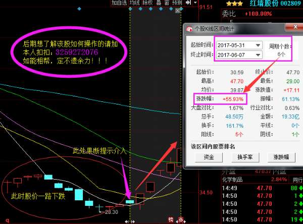 就像我在5.31号分享的红墙股份,该股,至跌停打开之后,股价一路下跌至28.3当时我就开始注意了该股,在5月31号的时候果断提示介入,很多粉丝朋友,也是不明白,都是相信我的粉丝朋友,至少抓住了50个点的收益!
