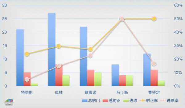 在有限的几次出场中,特维斯都是作为球队的战术核心,有着全队最高的场均射门数3.5次,但是射正率和进球率较为低下。特别是4.76%的进球率,横向比较的话甚至比大多数国产中锋进球率都要低很多。目前国内进球最多的球员武磊进球率为20.5%,堪称高效。射门次数最多的球员胡尔克进球率为12.9%。去年申花队中的吕征因为频繁浪费门前机会也让不少球迷心生不满,然而吕征的进球转化率也有8.7%。 不要忘了特维斯的唯一进球还是点球,如此多的射门次数,如此低的进球率,再多的辩解在数据面前也显得苍白。