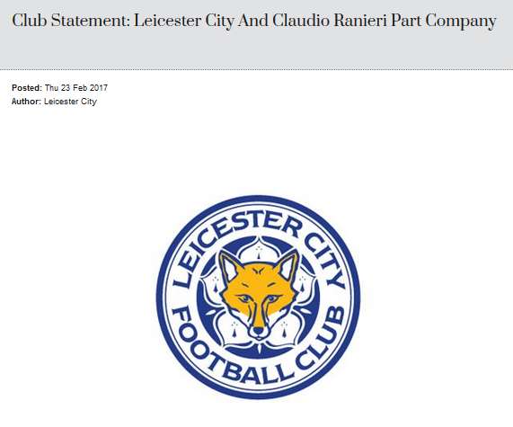 莱斯特官方宣布拉涅利下课