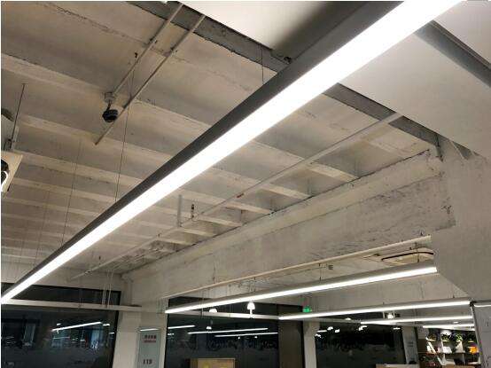 再比如,由于建筑结构限制,需要尽量减少对结构的改变,再结合办公位置,灯具尽量沿着梁排布,需要兼顾到天花的光分布,所以需要选择出光面较宽的灯具,但是又不能上下出光。针对此,欧普商用照明定制了三面出光的办公吊灯。