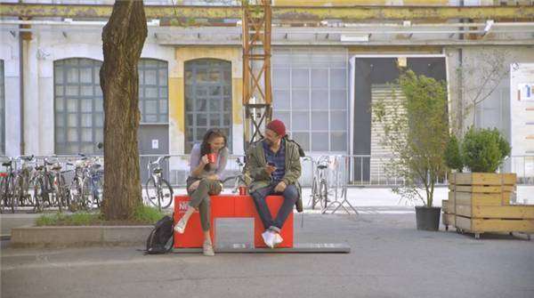 最近在米兰街头出现了一条红色长凳。当路人坐上去后,隐藏在凳子里的传感器便会启动,让坐在椅子两头的陌生人彼此靠近,简直是撩妹神凳。