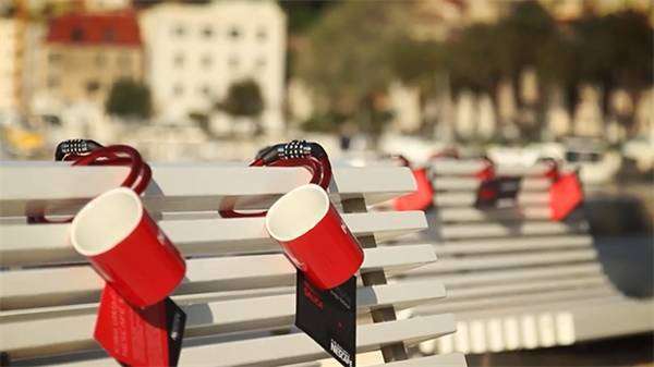 活动使用的是雀巢的当家小红杯,1000个杯子用密码锁锁在街头栏杆和座椅上。人们可以根据提示在雀巢Facebook主页留言,把密码锁的编码告知主页君,不一会就会收到密码,获得咖啡杯。有了杯子之后,你就可以去指定地点取一杯咖啡了。