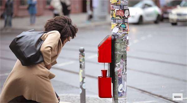 雀巢给柏林的市民们带来的一个惊喜,他们在斑马线两侧的红绿灯柱子上,各安置了一个特殊的咖啡机,两侧的咖啡机是“即时连接”的。