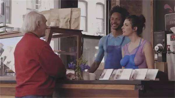为了宣传旗下的奶精Natural Bliss纯天然无添加,于是雀巢决定赤裸裸地展示自己产品给顾客。他们选择了一家咖啡店,十分大胆地让服务员清一色全裸,考虑到不能与恶俗沾边,给服务员来了场人体彩绘。