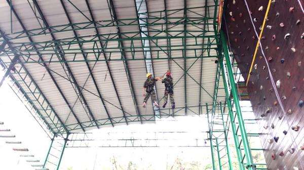 \u00A0 \u00A0 也许是有了第一次成功配合的经验,接下来的“抢滩登陆”“天使之手”两个项目,大家都配合得较为顺利,虽有难度,但完成较快,而当中成功的秘诀,就是要相信自己的团队和具有突破自我的勇气,毕竟在10米高空钢丝上行走,没有对团队的足够信任和敢于突破的勇气,怎能轻易完成?