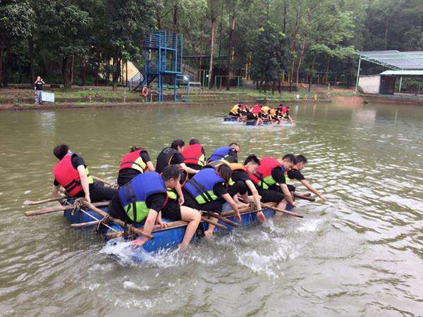 \u00A0 \u00A0 到达基地后,这群满身活力的浪鲸人,点着大雨浇不灭的热情,争先跳下车,在基地教练员的带领下,整齐快速地排成了4列队伍。紧接着,一条又一条的指令从教练嘴中滔滔窜出,队员们乐此不疲地一一执行,拓展团队中,似乎忘了平常工作时,彼此的上下级关系,纷纷融入了拓展的大团队中。