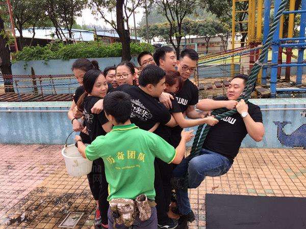 \u00A0 \u00A0 第一个项目,泰山绳,在规定的时间内,利用中间一根绳索把团队人员以一桶水递送到指定位置。初步组建的团队,这时面临的最大挑战是团队协作能力以及决策力,各队成员在方案讨论结束后,纷纷做出各种可能完成项目的尝试,由于团队在初步沟通时,决策不稳妥、分工不明确,配合不到位等原因,一次次被要求回到原点重新开始,但各小队的人员并没有气馁,调整状态,继续挑战,最后第二小队要要队抢得先机,在总结多次失败原因后,完美配合,争下本轮项目第一。