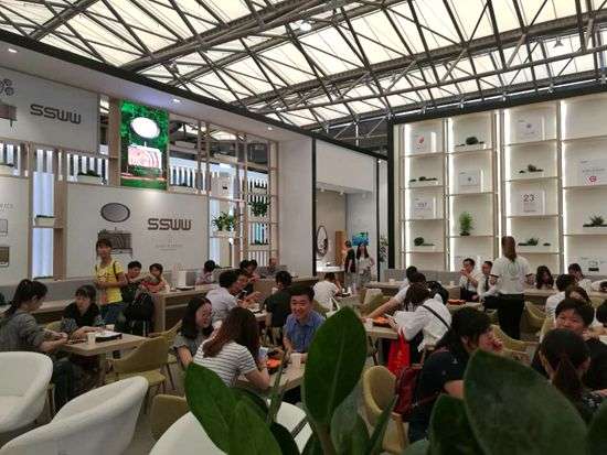 向往自然是一种生活哲学的主张,不要繁复,不要喧哗,主张极简主义,呈现物种的原型和注重原材的本质。浪鲸卫浴今年的展馆设计采用简洁的线条勾勒出井井有条的空间布局,中间部分墙体用木框镂空展示,通过光影变化,视觉上增大了空间的面积。馆内简约干净的颜色风格,搭配自然花卉、绿植,仿若置身大自然氧吧,令人神清气爽;接待处素色布艺沙发以及木制小配件,令整个空间体现出悠闲自在,清透自然的人文气息。