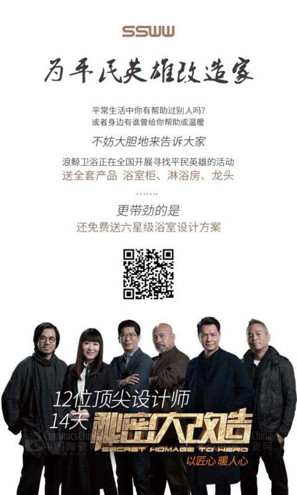 展会现场市场总监杨红发布了关于“为平民英雄打造家”的信息,自2017年4月底至7月初浪鲸卫浴携手央视《秘密大改造》节目,节目开播以来,引发泪点无数,同时也感动了许多普通人,在我们身边,像这样的平凡英雄不计其数。浪鲸卫浴不光为节目中的12位英雄改造卫浴空间,我们希望让身边更多的英雄得到卫浴空间体验,继续向社会传递正能量。