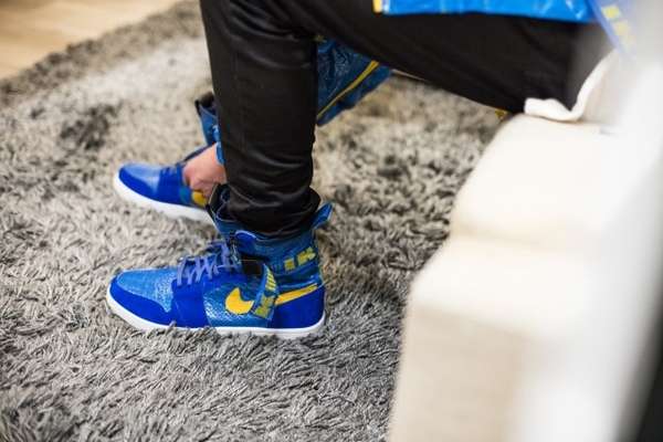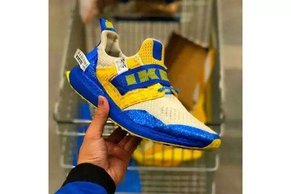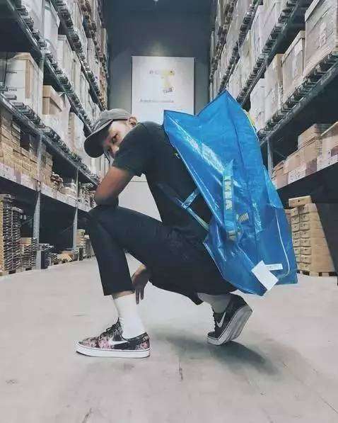 来自荷兰球鞋设计团队Studio Hagel,他们以 Balenciaga 的爆款鞋“Speed Trainer”为蓝本,用宜家购物袋加在运动鞋大底上,中筒袜套鞋样式,鞋领口和脚后跟处还有明晃晃的IKEA字样。