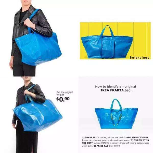 当然,材料和制作工艺不一样是肯定的,IKEA购物袋以尼龙制作,而 Balenciaga 则以羊皮制成,更是made in 意呆。