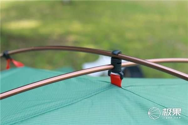 交叉式的帐杆,顶部的固件设计非常好,固定起来方便又合理。