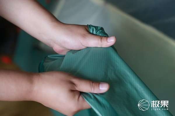收缩绳的收纳口设计,轻轻一拉就可以打开包装,收纳袋也是相同质地的面料,防水,防划,然后又轻盈。