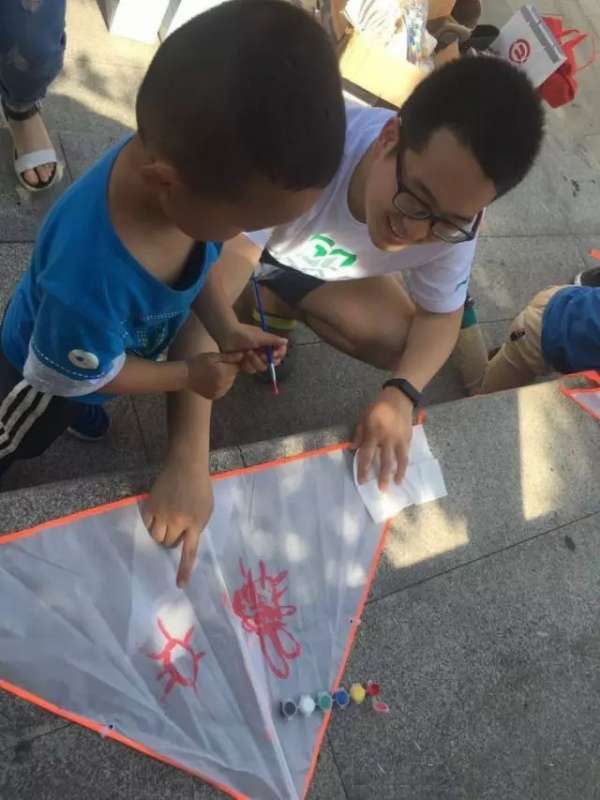 麻麻没有来现场,小盆友和爸爸一起手绘风筝作为送给麻麻节日的礼物