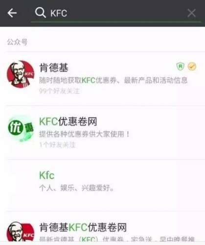 你会发现肯德基的认证微信号其实并不是“KFC”