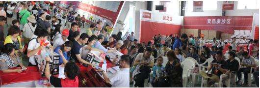 那边紧张忙碌地选购抢单,这边大排长龙选红包、领礼品,冰箱、洗衣、各式实用家居礼品一批批派出,让人赢得手发软、提不动!累了、渴了、饿了还有休息区、饮水区、就餐区等着大伙,这啥累咱也不怕了!