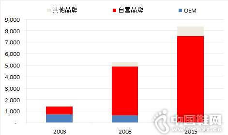下图中可以看到,2003时OEM业务占了半壁江山,2008年OEM业务占比下降到12%,2015年仅占2%。