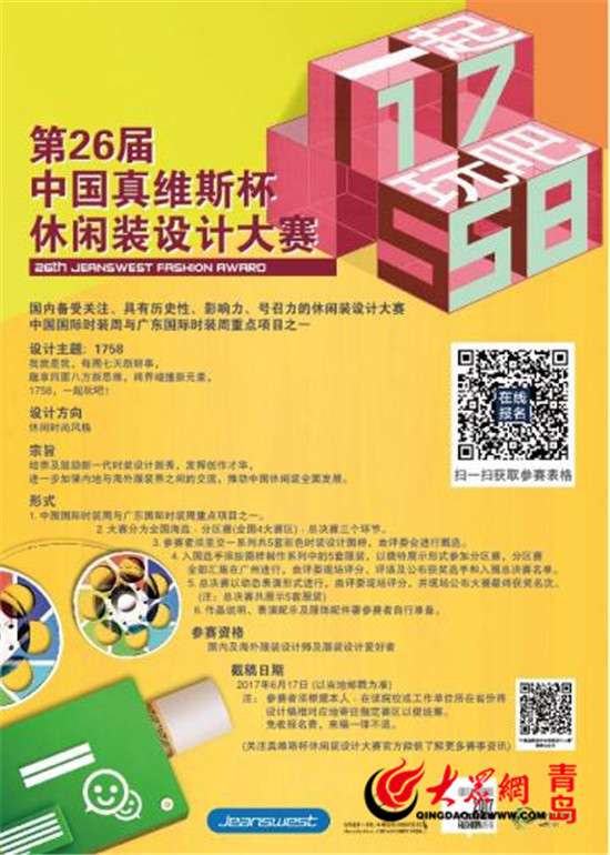 记者了解到,第26届中国真维斯杯休闲装设计大赛全新主题――“1758”,意在传达时下新思维的趣享与新元素的跨界碰撞!当今社会移动互联网行业高速发展,分享、跨界、碰撞、自我等成为时下热点,主办者希望透过引入新元素到设计之中,让新新人类们尽情地发挥脑洞,同时在设计中寻找乐趣、分享乐趣、收割灵感、彰显创意的无限可能性。