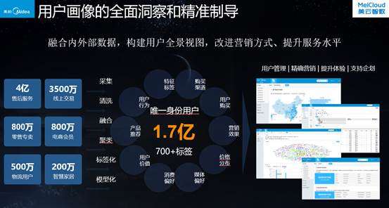 其中,在大数据方面,美的构建了包含市场、渠道、生产、研发、售后、消费者等环节在内的研产销一体化闭环驱动,从而实现市场研判、竞争剖析,打造精品、按需生产,品质监控、产品改善,聆听客户、改善服务,用户洞察、提升体验,电商运营、营销策略等等。