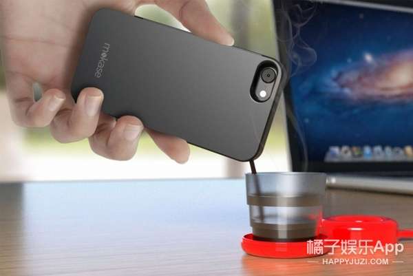 其实咖啡是用一个神奇的手机壳泡出来的,里面装有浓缩咖啡囊盒,外部则是用特殊的隔热材质做成,当你想要喝咖啡的时候,只要启动手机的App,手机壳就会自动加热咖啡,最后你就可以从手机壳的真空管中倒出大概25毫升,50—60度的咖啡啦。