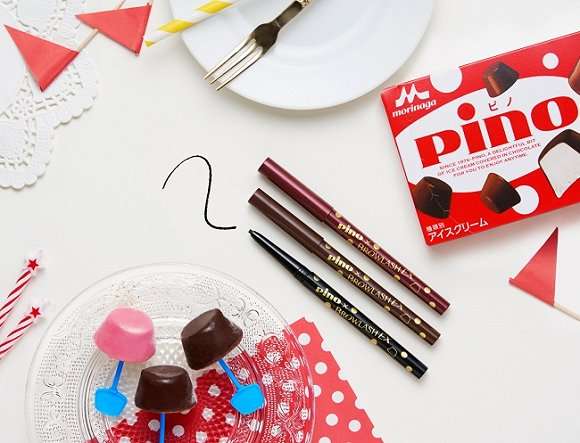 在日本,Pino是森永乳业株式会旗下较为知名的经典巧克力冰激凌品牌。最近,Pino玩起了跨界,与日本美妆品牌BROWLASH合作推出了一款巧克力眼线笔,售价1080日元。