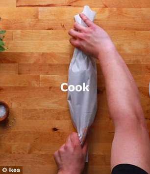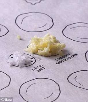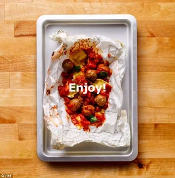 越来越重视餐饮业务的宜家最近做了在加拿大市场推出了一个特别的食谱。每道菜的材料、佐料都用安全食用油墨画在一张羊皮纸上,纸张顶部有步骤过程和使用说明。消费者将对应的食材放到纸张上的固定位置后,把羊皮纸卷起来,放入微波炉加热即可。
