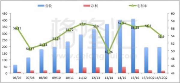不过2012年百丽的鞋王地位有些松动的表现。这个财年的净利润仅增长了2%,而这个时点之前百丽的净利润增长都保持在20%以上的增速(2008年除外)。2012年之后百丽的营收增速一路下滑,到2016/2017财年中期报告仅增长了0.9%。