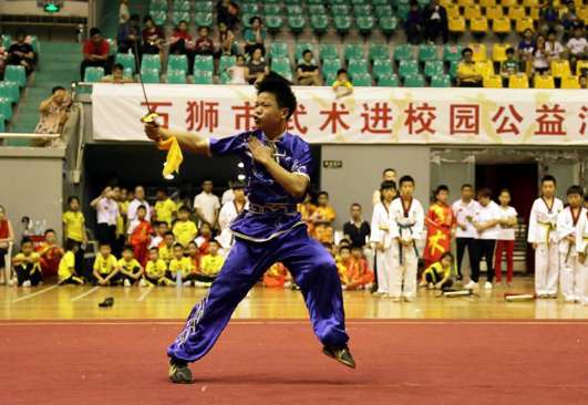 6月17日,由中共石狮市委文明办、石狮市教育局、石狮市文体旅游广电新闻出版局主办,石狮日报社、石狮市武术协会、民建石狮总支部第四支部、石狮市太阳风文化促进会协办,石狮市神州武术学校承办的“石狮市武术进校园公益活动暨武术展演”活动,在市体育馆开展。活动举行了石狮市武术训练基地揭牌仪式,并邀请了福建省武术队到场表演。来自石狮本土及省内各地的武林高手联袂为现场观众一展不同风格的武术神韵,赢得了观众的阵阵掌声。