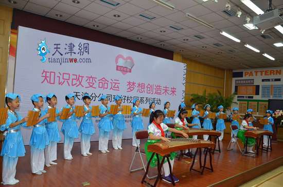 活动现场,为了表达感谢,学校的孩子们穿着漂亮的演出服,为大家表演了精彩的节目,具有杨柳青地方特色的舞蹈表演,获得大家热烈的掌声。